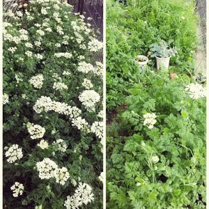 我が家のオルレア❣️ 左側は5月 右側は4月 こんなにモリモリお花も沢山咲いて綺麗です💕 小さな庭が足の踏み場も無いくらいにオルレアで埋め尽くされてます😂
