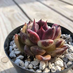 【 ブラッククィーン 】 紅葉がさめてきました。 そして、変形してきたなーと思ったらお子様が。2つも。 元気なのはいいんだけど、ここで大きくなられると、カットしたことないからどうやっていいのかわからず悩む。 *** 今日は晴れてくれたのはいいんだけど、とにかく風が強い!!🌀 日光浴させられないけど仕方ない、と多肉棚に置きっぱなしにしてるのに、そこの土も飛ぶんかい! 目の前でぶわーっと鹿沼土が舞いました。 ∑(´□`;) ヤメテー!!