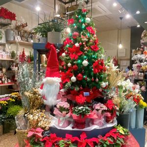 お花屋さんでは赤いポインセチアさんが並ぶ季節になりました🧑🎄🎄 通りがかりのお花屋さん、クリスマス色でした🎄❤️💚