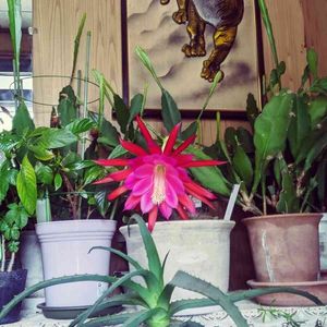 クジャクサボテンが外に設置する前に去年より早く開花😁🏵️ 今年はかなり暖かいのでしょうね^^; 夏が恐ろしい(^_^;)