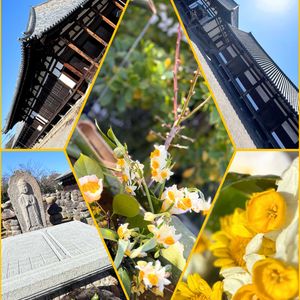 💙○︎o。空と植物。o○︎💛 ٩(ˊᗜˋ*)وおはよぉございます♪ 💛神社仏閣巡り♪ 🦌奈良ෆ̈世界遺産〜元興寺(がんごうじ) 💛①②スイセンの花手水✨ 🌸③室寒桜(ムロカンザクラ) (*˘︶˘*).。.:*♡