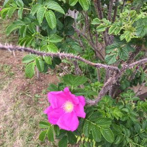 小石川植物園にて。 鮮やかなハマナスの花。