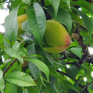 桃の実🍑 シリーズ、お散歩したら🚶 近所に桃の木を発見📷️✴️ 実🍑も色づいてきました