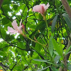 キョウチクトウ🌸 シリーズ、お散歩したら🚶 大木の背丈より随分高い場所に咲いてました 🌸\(^-^)/🌸