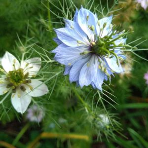 ニゲラ 和名 クロタネソウ 毎年 零れ種で咲いてくれますが、今年も可愛い姿に会えました💕 バルーン姿の膨らんだ実も可愛い✨😍