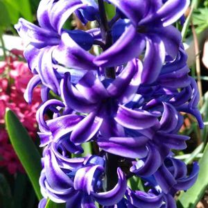 紫ヒヤシンス💜 アップで見ると 小さなラッパのような。。。。 のが、うねっとカールして ユニークな形 香りも好き💜 プランター栽培鉢の中で😊