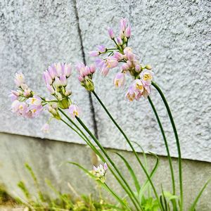 日当たりのよい斜面に群生するアリウム・ロゼウム。 擬宝珠のように大きな雫型のつぼみが開くと、こんなにたくさんの桃色の花が咲きました。