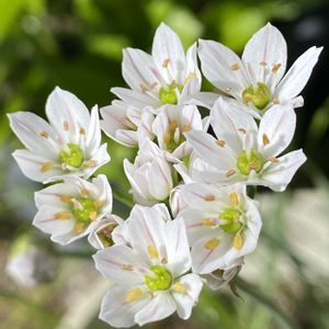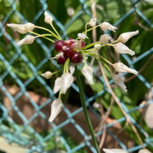 アリウム・ロゼウム 毎年ハタケニラと紛らわしく思う花です。 昨年ムカゴがあったのでロゼウムとしました。 ピンク色が消えて限りなく白に近くなりました。 ユリ科 ネギ属 原産地: 地中海沿岸 開花期:5〜7月