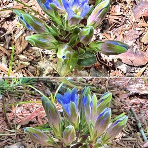 春に誘われて山野をウロチョロと…😆 可愛い小さい竜胆くん😍 これも一つの茎に複数の花がつく「フデリンドウ」ですね。どういうわけか近所の山々でハルリンドウを見かけない、こういう時もあるのかなぁ…