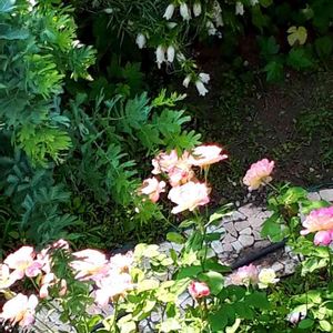 朝陽に浮かぶ薔薇と暗がりのホタルブクロ💕 2階の窓から😊