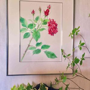 先月、娘の高校の時の先生に逢いに盛岡へ行って来た🚄 先生の個展にお邪魔して、娘と先生の想い出話に花が咲いていた💐 私の知らない学校生活を垣間見て、なんかホット💕して帰って来た😊 額装されてない薔薇の絵が欲しいと無理を言って頼んできた。 先日、額装されて先生こだわりの銀の縁も施されて我が家に💕🖼 ありがとうございます😊 早速飾らせて貰ったよ💕✨
