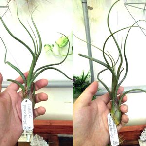 チランジア・プセウドベイレイ Tillandsia pseudobaileyi プセウドの花房は渋いっすね 先端にいくに従い色が抜けていく 薄い緑色?薄い紫色のなんとも言えない色 先っぽにはこれから濃い紫花を付けるはず あ!娘のチラですがGSでUPしちゃってますねw(≧∀≦) 開花がたのしみです!