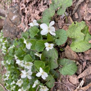 2024/4/28北海道小樽市の住吉神社で日陰にたくさん咲いていました。桜も満開を過ぎて散り始めていました。近くには青い小さなエゾエンゴサクも咲いていました。こと白い花は何でしょう? シロバナタチツボスミレ?