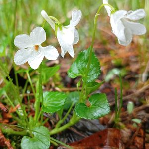 オトメスミレ (乙女菫)スミレ科スミレ属 ・距はうっすら紫色 ・測弁は無毛 ・葉は心形 ・花は真っ白 ・富士山麓 タチツボスミレの花が白色で、距が淡紫色になる品種です。 和名は牧野富太郎博士が箱根の乙女峠で発見したことに由来し、箱根には多いようです。 花や距など花全部が白色のものは別品種のシロバナタチボスミレになります。 4⃣5⃣はシロバナタチツボスミレでしょうか。 🏷 スミレの迷いみち 🏷 白い貴婦人✨