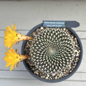 スルコレブチア アレナケア 幾何学模様が美しいサボテンです。横から花を咲かせました。