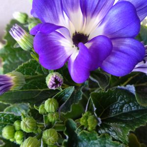 ようやく咲き始めた 🟣 サイネリア 🟣 チラっとのぞく葉裏の紫も綺麗です (๑ت๑)♡💙♡