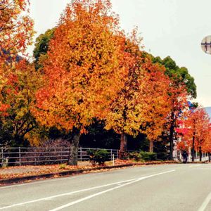 朝の散歩道 仁保川沿いを 街路樹のモミジバフウ🍁