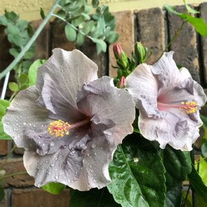 今日のお花 ハイビスカス🌺ケイト 今日は朝から雷鳴⚡️☔️☀️青空 なかなか忙しい天気です💦 そんな中玄関ポーチで咲いた ハイビスカス.ケイト🌺 雨粒まとってなかなかの雰囲気💕 🏷️水滴の水曜日 🏷️シックな水曜日 初参加させて頂きます