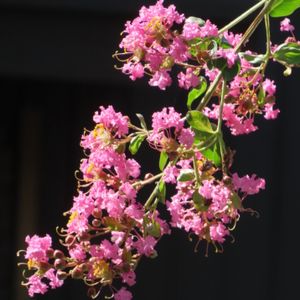 "今日のお花 サルスベリ" 散策路沿い。 黒い塀をバックにピンクが一段と引き立って素敵でした。 撮影日 2023.8.初旬
