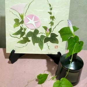 🏷️素敵な水曜日 🏷️シックな水曜日 アサガオ 朝顔 門扉を閉めに行き 目が合いま した 押し絵 絵葉書と一緒に