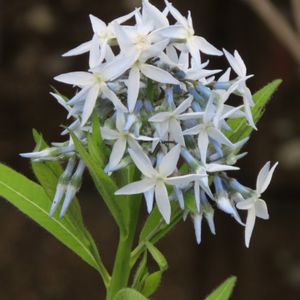 "水曜日は水色" 散策路沿いの庭先。 淡い青紫色の5弁花が茎頂部に集まって咲く素敵なお花に出会いました。 調べるとチョウジソウ(丁子草)とのこと。初めての出会いに胸がトキメキました。 キョウチクトウ(夾竹桃)科チョウジソウ属。花の形が横から見ると「丁」の字形に見えることから「丁字草」の名に。また、香料で有名な「丁子」に似ていることから命名されたともいわれています。 撮影日 2023.4.26