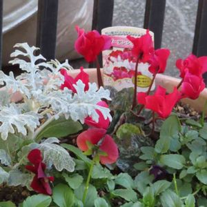 1月上旬 寒いけれど晴れ🌞 見元園芸さんオリジナルのお花の色がシックでいいなと思い、先月ビオラとクローバーを購入。 一応プランターに寄せ植えのつもりなのですが、クローバーがまだあまり大きくならず、なんだかまだスカスカです。 名前がかわいらしい💓 ビオラ 「ピンクコアラ」 赤葉の三つ葉クローバー 「天使のピアス ビューティー」 春に咲くピンクのお花も楽しみ💗