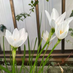 ☆庭のお花達☆ ❶タマスダレ 真っ白に惹かれます〜 ❷ベゴニア 先日picの花色のピンクが 白くなり、陽当たりへ移動させた ところ、少しピンクに葉っぱも 黒っぽく戻りつつあります ❸ヤブラン お花も沢山出てきました〜 ❹エリンジウムの苗 3日前、友達から頂きました〜 大きく育ちますように🙏
