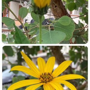 ☆庭のお花達☆ キクイモの花のようです 昨年、花が終わった頃 枯れた長い茎に根っこが ついたのを頂き、小さな お花のひまわり🌻だと思い、 南の隅っこに茎を短く✂️し、 植えてみました〜 夏に茎2本、長く伸び、 下葉が枯れていて、 お花を諦めていたら、 今漸く咲きました〜 水不足だったのかもですね? ググってみたら、キクイモとか 食べれるらしいけど🤔 これは畑に植える物ですねー 私はお花だけ生け花で 楽しみます〜