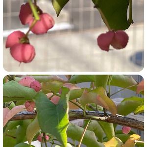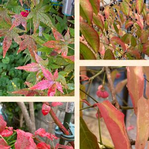 ☆庭のお花達☆ 紅葉が始まりました〜 ←🍁モミジ ↓ブルーベリー、少し残っている葉が、真っ赤になりましたー →マユミの葉がピンク色に😍