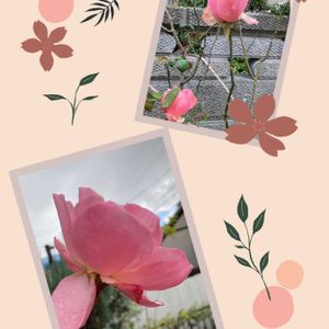 ☆庭のお花達☆ 🌹クイーンエリザベス 昨夜からの強風と冷たい雨の中 葉っぱが殆ど無い状態なのに 頑張って咲いてます 一本は高い所で、 横からのショット😅