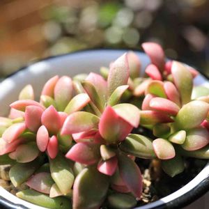 2020.10.6 週末に街角のお花屋さんで購入したアナカンプロセス、桜吹雪ちゃんです。ピンクに紅葉した繊細な葉っぱがデパ地下のアーモンドがけのお菓子を連想させます。 普段100円か200円程度の多肉ちゃんしか買わない私にとって、こちらは1.5号鉢程度の小さなサイズで400円と少しお高めでしたが、あまり見かけない種類だったこともあり即決でした(*^^*) きれいに増えてくれたら嬉しいなぁ♪