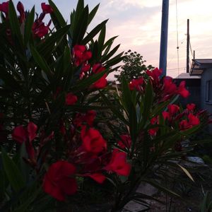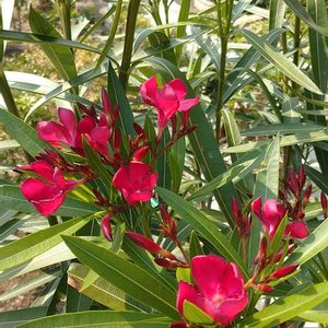 濃い赤が欲しくて去年迎えたキョウチクトウ!でも、濃くなかった🤔 触ってから目を擦ったりすると大変な事になるとフーさんに教えてもらいました😵