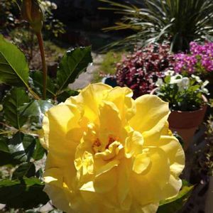 ちょっと撮るのが遅かったですが玄関前に良い香りが漂っています。フリージアと言う薔薇です。