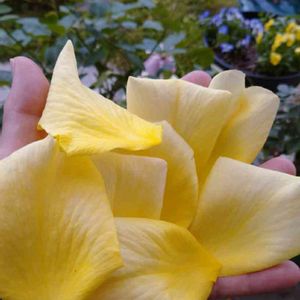 16日投稿の大輪の薔薇フリージアが今日まで咲いてくれました。寒くなったからなのかピークから7日間も咲いてくれたのでバラして撮りました✨捨てるのもったいないです。