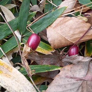 【秋の実シリーズ32】ツルリンドウ(蔓竜胆) まだまだ秋の実シリーズ、続きますよ~👍 旅先で訪れた記念公園で、お庭の落ち葉に目をやると、金時豆のような大きさで赤紫色に輝く実を見つけました‼️ 枯れた花筒の中から、赤紫色の実が突き出てる ツルリンドウのようです🥰 旅先で訪れた記念公園にて 2022.11.17