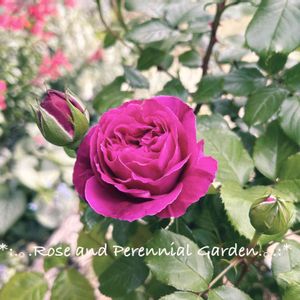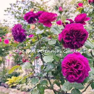 ル・タン・デ・スリーズ Le Tepms des Cerises とても印象的な深みのある赤紫色の中大輪花。花弁がやさしく波打つロゼット咲き。数輪から5輪程度の房咲きになる。春一番の花は深い赤紫、二番花から夏の花は赤みが強くなり、秋の花は黒みの強い赤に。ローズとフルーツの香り。強香種のわりに花持ちがよく、雨などによる傷みも少ない。四季咲き性の中型シュラブ。枝は細めだがしっかりしていて樹形はきれいに整う。強めの剪定で鉢植えで自立シュラブとして仕立てることもできる。庭植えや大きめの鉢植えでは背丈ほどのシュートが伸びることもあるので、小さめのつる仕立ても可能。耐病性が強く育てやすい。名はフランスのシャンソンの名曲「さくらんぼの実る頃」から。(https://www.delbard-japon.com/2022/11/14/2805/より) 2023.5.13 横浜ローズウィーク「ローズフェア with 趣味の園芸」横浜市役所アトリウム 🏷️おしゃれな土曜日♪ 🏷️コラージュ仲間達 🏷️美しく青きドヨウ 🏷️毎日ローズショー 🏷️青薔薇マニア 🏷愛しの紫♡ 🏷癒しの紫 に2枚目参加します🤗