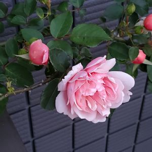 壁に向かって横に横に行こうとするバラ🌹 このまま壁に誘引しようか( ・∀・)