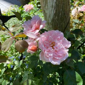明るいサーモンピンクのバラ 旺盛に伸び強いことから 三度の移植で根や株をカット それでもどんどん伸びています トゲはきついけど元気で可愛い つる性一季咲き中香(ティーの香り)
