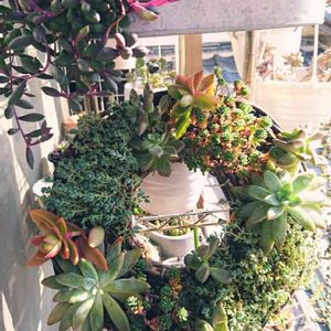 針金で 作った ちいさな寄せ植え しっかり 根付いた みたい 💕