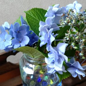 家の中で飾られてるアジサイ2種 1種は中心部分はポロポロと落ち始めてますが水替え時にお花を洗い流すようにしてからまた飾っています 色褪せも少なくまだまだブルー色が綺麗です🩵 6/25投稿から3週間?の今日も綺麗に咲いてくれてます✨
