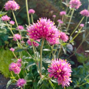 ゴンフレナ・ラブラブラブ 花言葉:「不朽」「不死」「変わらぬ愛」「色あせぬ愛」「永遠の恋」「永遠の命」「安全」 ヒユ科ゴンフレナ(センニチコウ)属🌿一年草 冬越しした株です🌿 センニチコウ(千日紅)の改良品種😊暑さに強く、連続開花性に優れ、春から晩秋まで咲く🌼🌼🌼