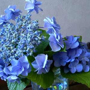 紫・青の紫陽花の花言葉∶「冷淡」「無情」「浮気」「知的」「神秘的」「辛抱強い愛」 アジサイ科アジサイ(ハイドランジア)属🌿 小さめの青い紫陽花、好きです😍🌼✨✨