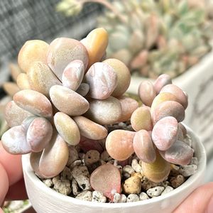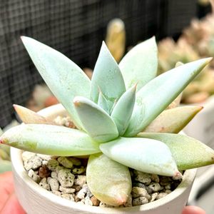 多肉植物園ナイト営業中✩.*˚ 徒長ではなく成長^^; 縦に伸びやすいのかな? この子は斑入りなのか? 忘れた(^^ゞ 見た目は…うーん╮(´•ω•)╭微妙。 たまにこういうのを錦として販売しているのを見掛けるけど… 元々この子はエッジが半透明だからね^^; 錦ではなく錦風だと思うんだけどね^^; でも色も可愛いし透き通った葉先でキレイだし(*´︶`*)❤︎ ※グラプトベリアのとは別品種です