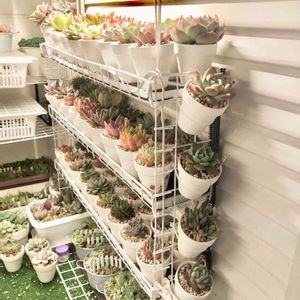 多肉植物園ナイト営業中✩.*˚ 一番日当たりが良い場所だけに 側面にも鉢を置けるようにしました。 4つだけだけどね(^^ゞ ちなみにDAISOで網を買って来て インシロック(結束バンド)で留めて多肉棚を制作してあります。 今回もインシロックで鉢を留めているだけです。
