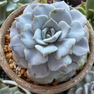 おはようございます😃 よく降りますね☔️💦 ✨ぺったん✨ 久しぶりの登場かな🤔 2.5号のリメ鉢いっぱいなので鉢増し候補です😁 よく見ると分かるかな タグ側の葉数が多くて傾いてきてます😅 植え替えの時には何枚かもぎることになりそうなので、葉挿しがたくさん出来そうです☺️