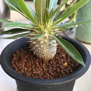パキポディウム ブレビカリックス 昨年末、ツンツン頭で迎えたブレビカリックス🎵 おはよう😃 葉っぱ見せてくれて嬉しい 🎵😍🎵 🌱✨
