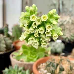名前の分からないセンペルビウム🌿 花🌼咲きました〜😊 すごく控えめな花🌼です😅
