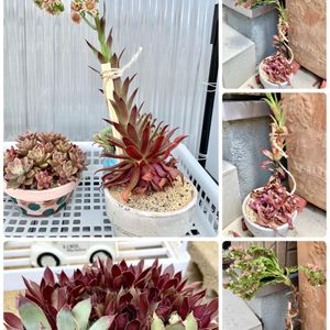 寄せ植えのセンペルビウムさん お花が咲いた後はきっと枯れてしまうけど 可愛いので咲き終わるまでこのままに😁