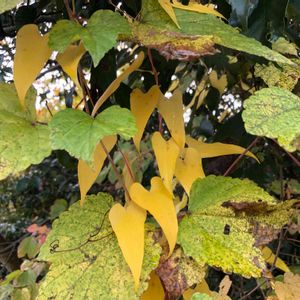 ヤマノイモの黄色いハート𓂃𓂂🍃 共に絡んでるのはノブドウかな🙄💭💭💭 可愛いビタミンカラーを見つけたので🆙💕 *.+゚♡*.+゚。:°ஐ..ʚ♡ɞ*.+゚。:°ஐ..*♡*.+゚