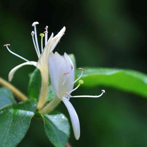 雑木林で、黄色と白のスイカズラが、背中合わせで咲いていました。